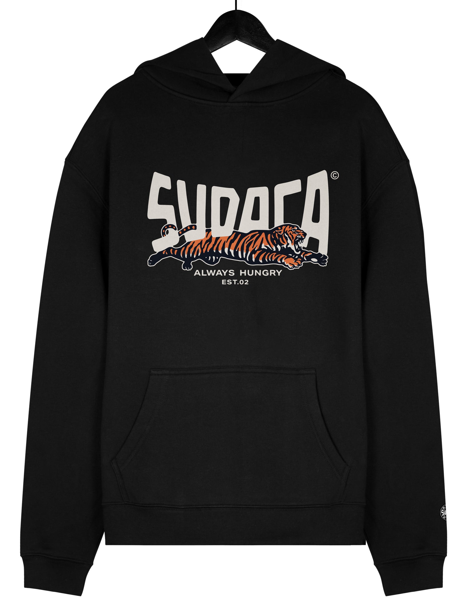 ALWAYS HUNGRY (siempre hambriento), es una declaración que muestra nuestro espiritu luchador y competitivo. Esta prenda tiene un estilo pulóver con capucha y está hecho en un corte relajado para una mayor comodidad y un pre-lavado para una mejor textura y durabilidad.