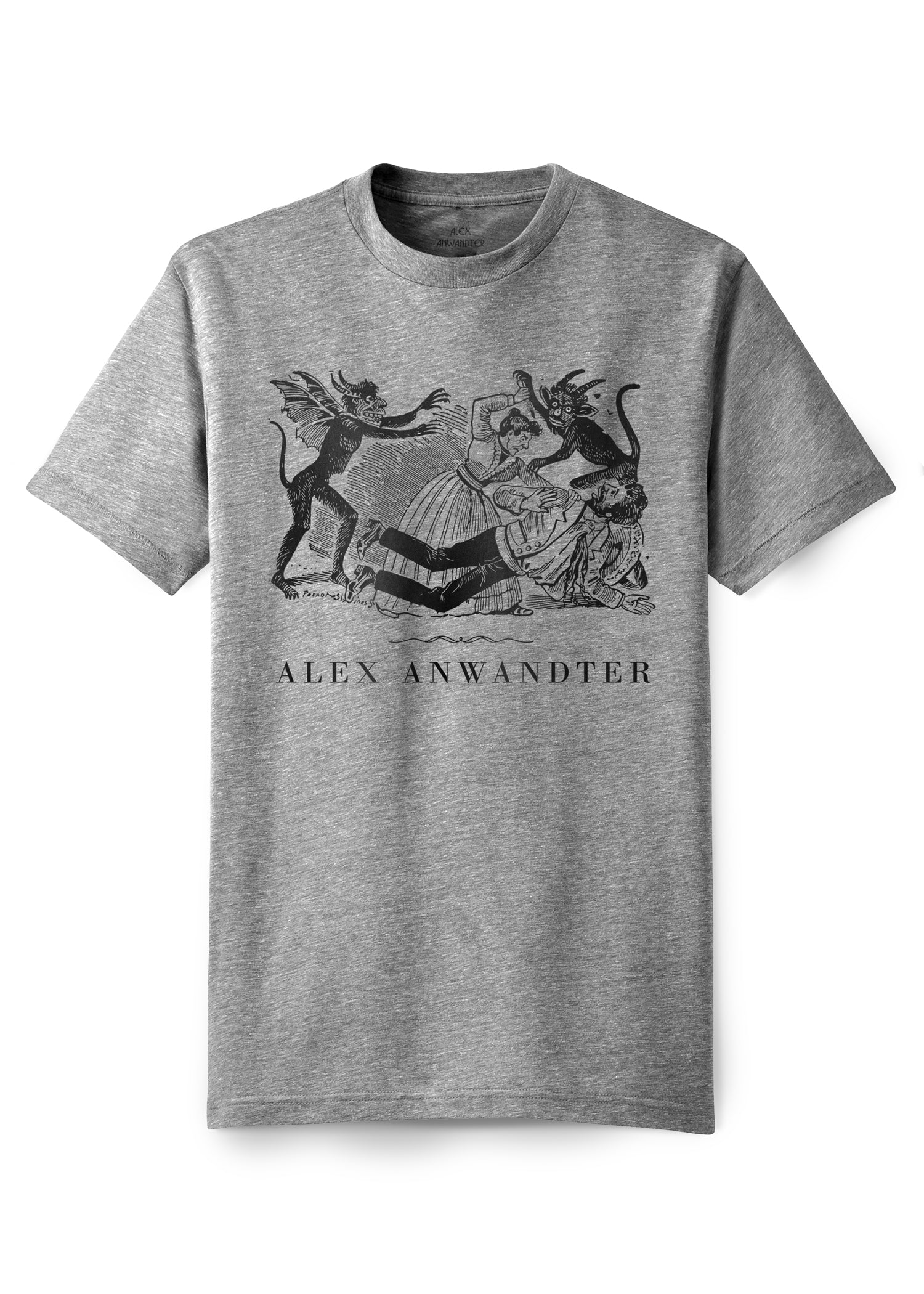 This basic crew neck ultra soft tee made for Alex Anwandter features the work "Horroroso Asesinato" by renowned Mexican artist Jose Guadalupe Posadas. A woman surrounded by demons stabbing a man to death. Custom soft screen-print at the front chest.