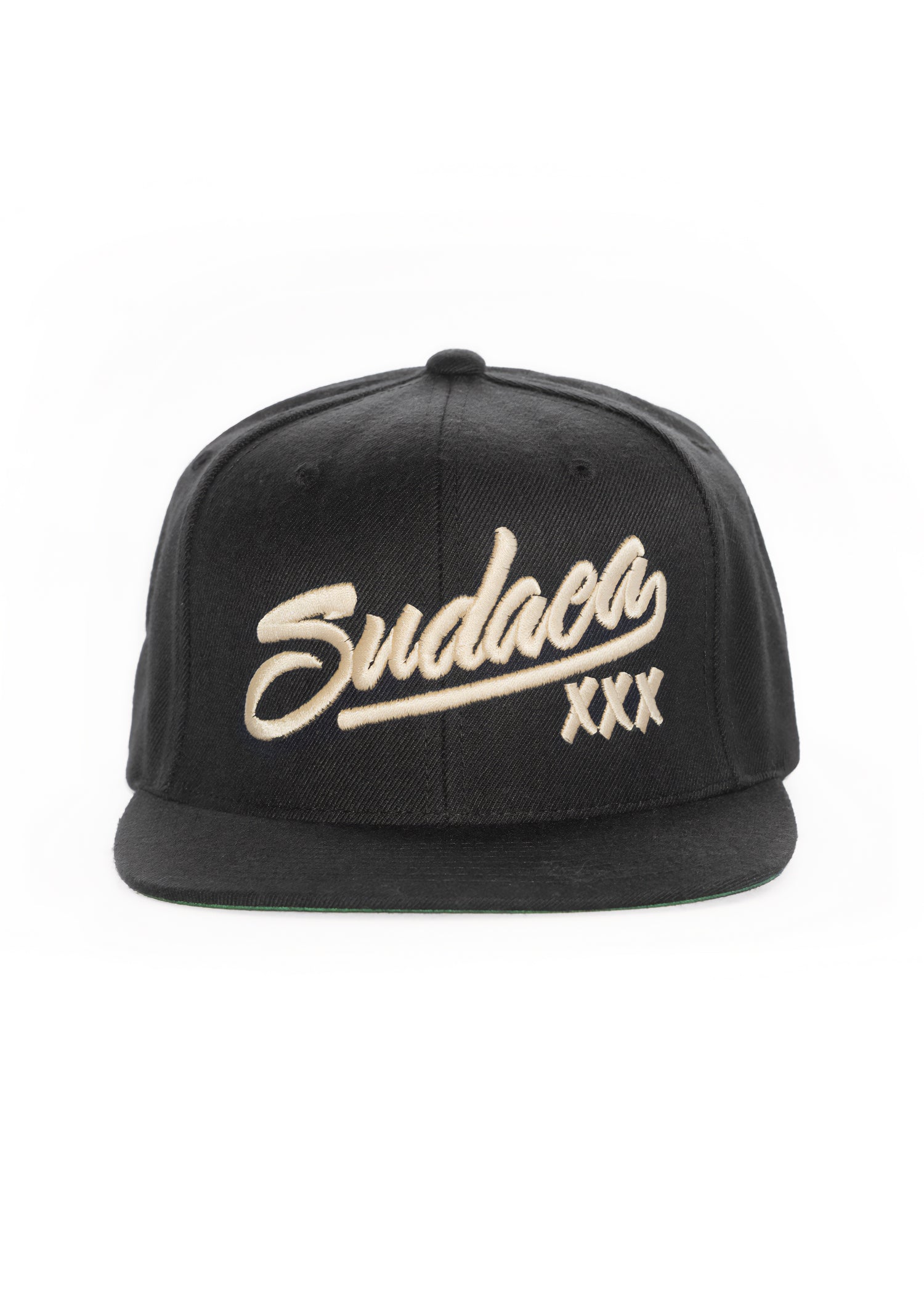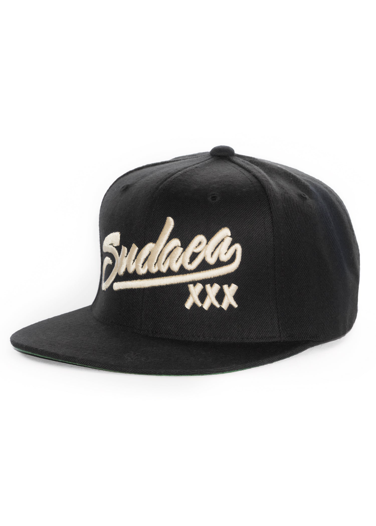 Washed cotton canvas hat with a paneled construction and embroidery at the front. Fitted with a flat brim and an adjustable snapback closure.