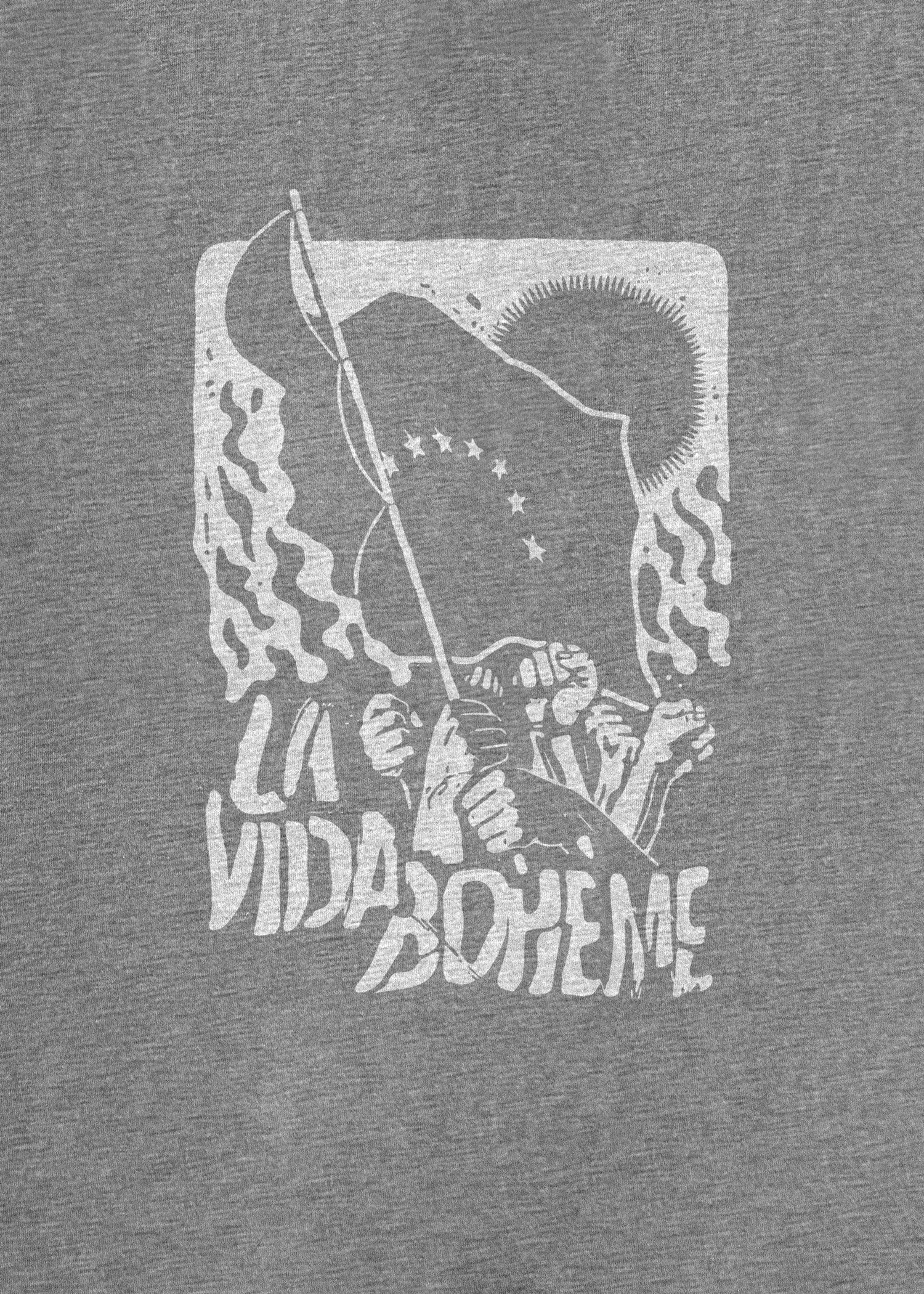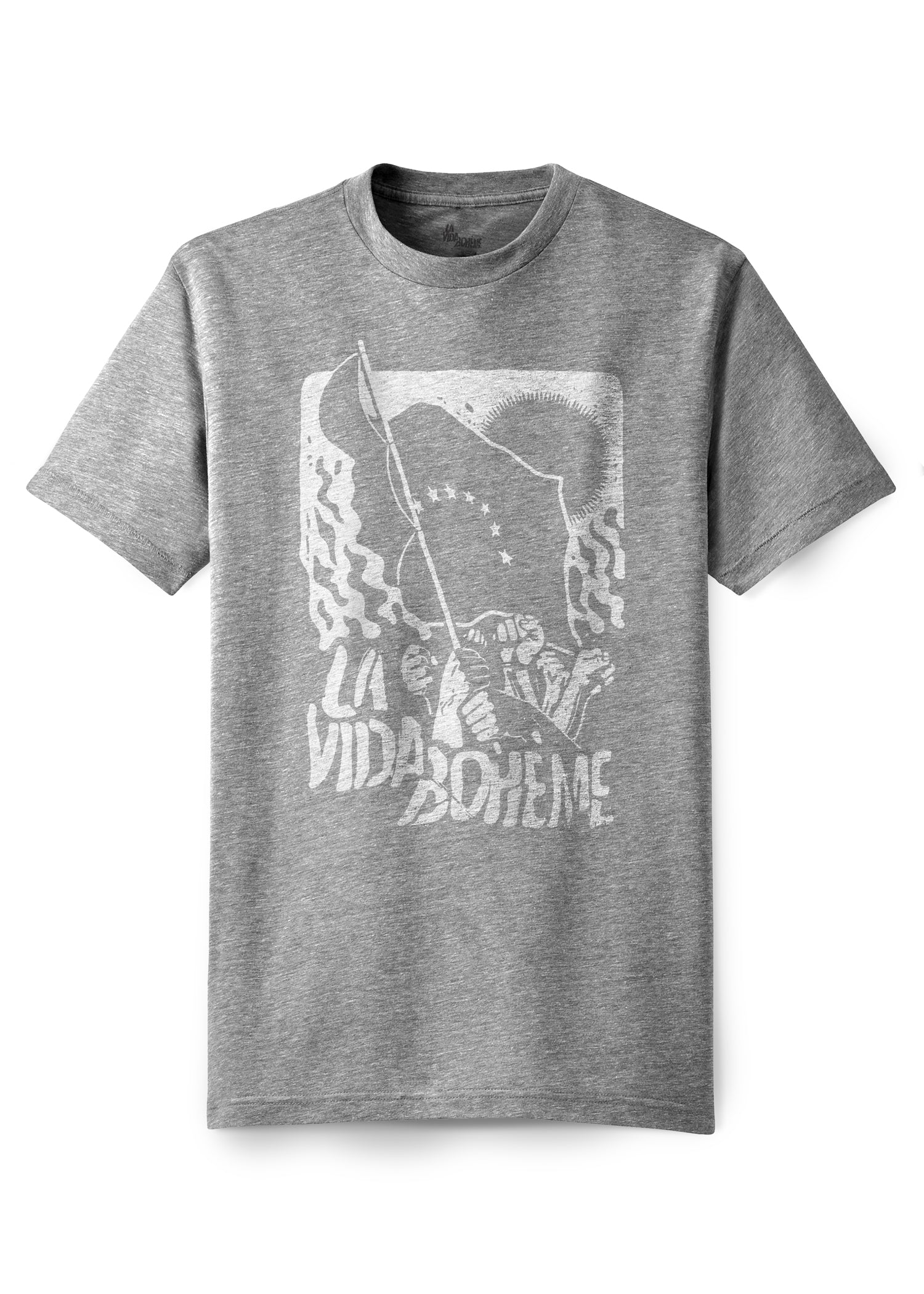 This basic short sleeve ultra soft tee is a celebration to La Vida Bohéme success. It features custom artwork inspired by the spirit of students barricades. soft screen-printed front chest.
