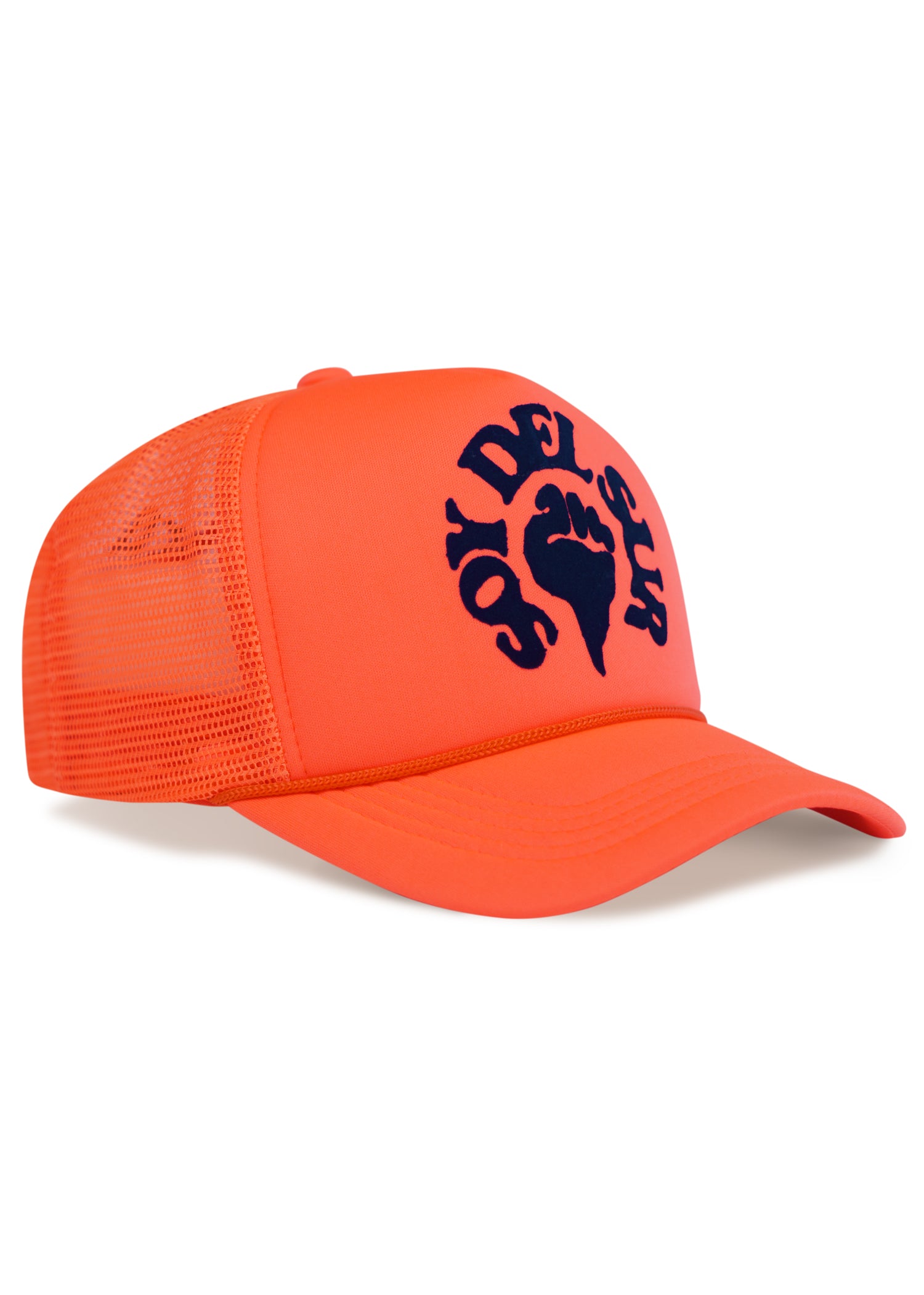 Classic trucker hat with snapback closure with our original Soy Del Sur graphic on a flock finish at the center front and Sudaca's wordmark on the back.