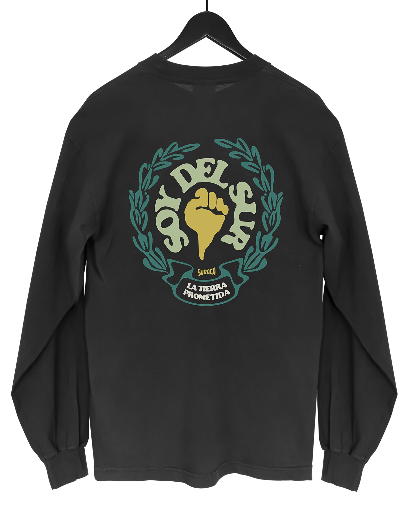 Por que el Sur es nuestra tierra prometida. Esta camiseta de manga larga y cuello redondo está hecho en un tejido de punto jersey premium. Confeccionado en 100 % algodón pesado, ha sido pre-lavado y con un teñido reactivo para una mejor textura y durabilidad. Esta prenda esta hecha con un corte relajado para una mayor comodidad.